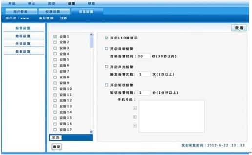 (5)報(bào)警設(shè)備設(shè)置菜單,可設(shè)置音響報(bào)警的報(bào)警。